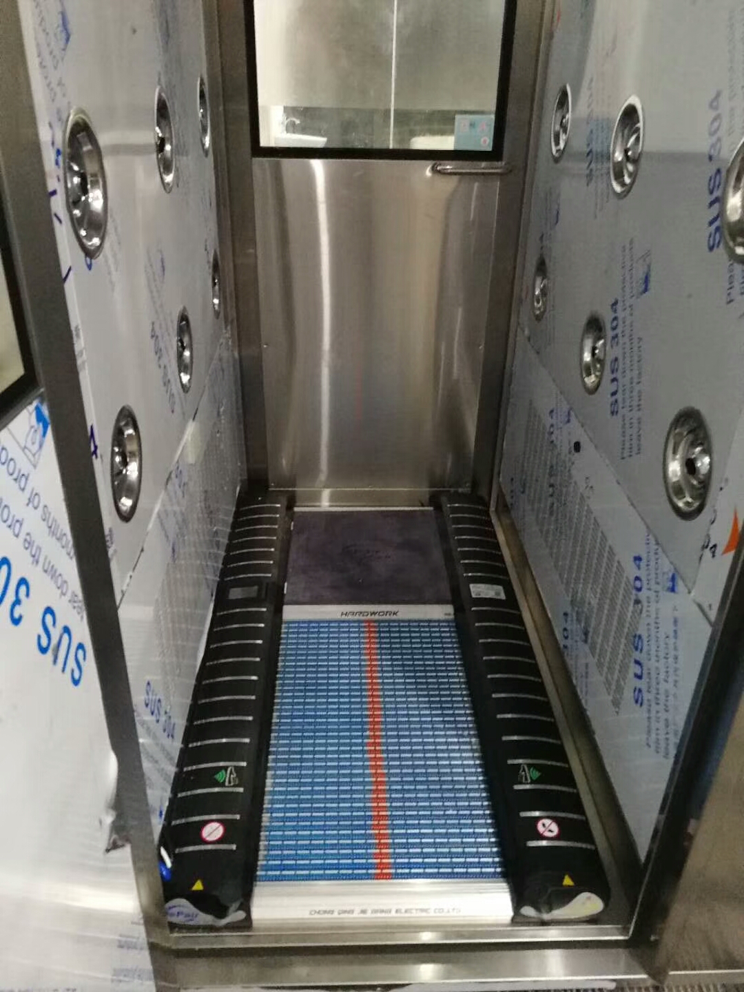 鞋底清潔不銹鋼風(fēng)淋室的內(nèi)部展示