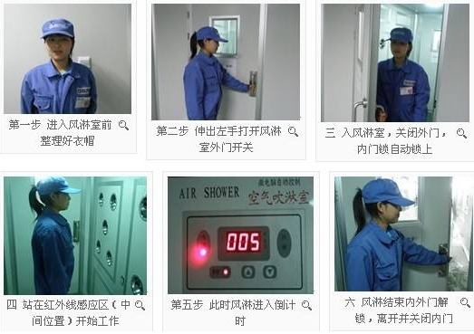 打開內(nèi)門--------外門上電自鎖-------進(jìn)入風(fēng)淋室------關(guān)上內(nèi)門------內(nèi)外門解鎖----進(jìn)入非凈化車間-------返回凈化車間 。